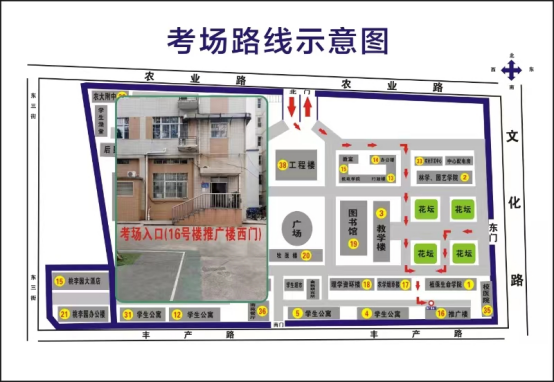 ÎÒУ½ûֹУÍâ³µÁ¾½øÈ룬Çë¸÷λ¿¼ÉúÌáǰ¹æ»®ºÃÐг̣¬Æ¾±¾ÈËÉí·ÝÖ¤Ô¼þºÍ×¼¿¼Ö¤´Ó±±ÃÅ£¨Å©ÒµÂ·63ºÅ£©»ò¶«ÃÅ£¨ÎÄ»¯Â·95ºÅ£©½øÐ££¬°´ÕÕУÄÚ·ÏßÖ¸ÒýǰÍù¿¼³¡¡£¿¼ÊÔµ±Ìì8:30¿ªÊ¼½øÈ뿼³¡£¬¿¼Éú¿ÉÌáǰ½øÈëѧУ£¬ÊìϤУ԰¼°¿¼³¡Öܱ߻·¾³¡£